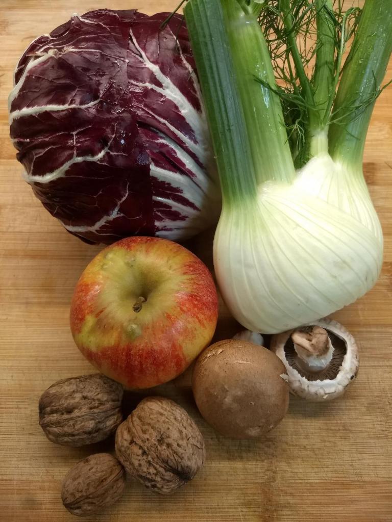 Darum stellen wir euch heute unseren Herbstsalat mit Radicchio, Fenchel, Apfel, Pilzen und Walnüssen vor!