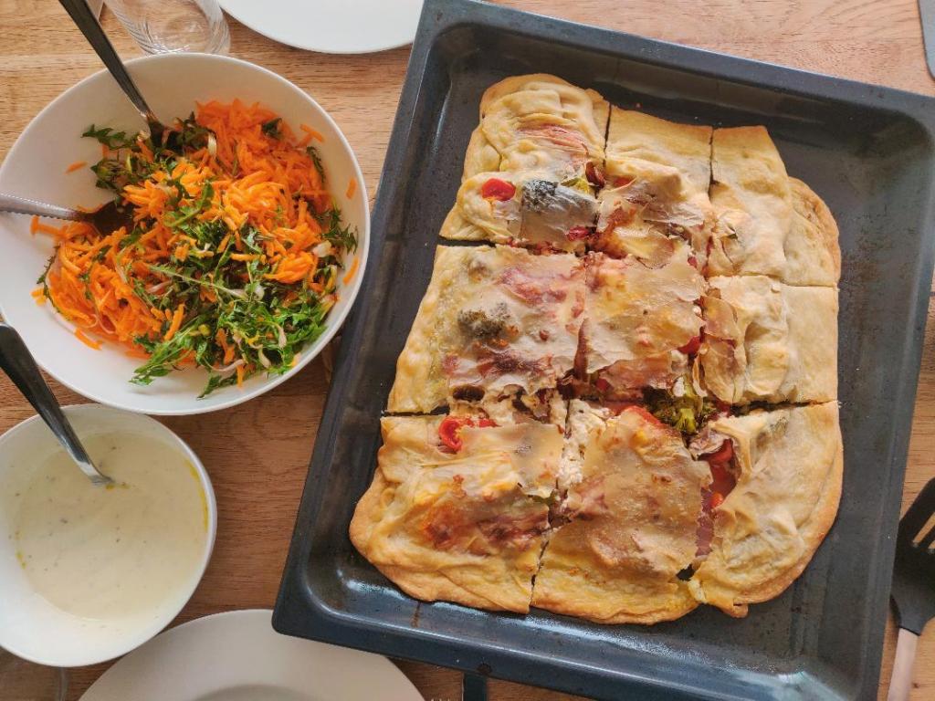 The „flat strudel“ was created because my two little ones (2 and 5 years) helped me cook and wanted to do everything ALONE. In addition, all of us prefer the crispy dough on top of the puff pastry strudel … and the „flat strudel“ has a lot of crispy dough ;-).