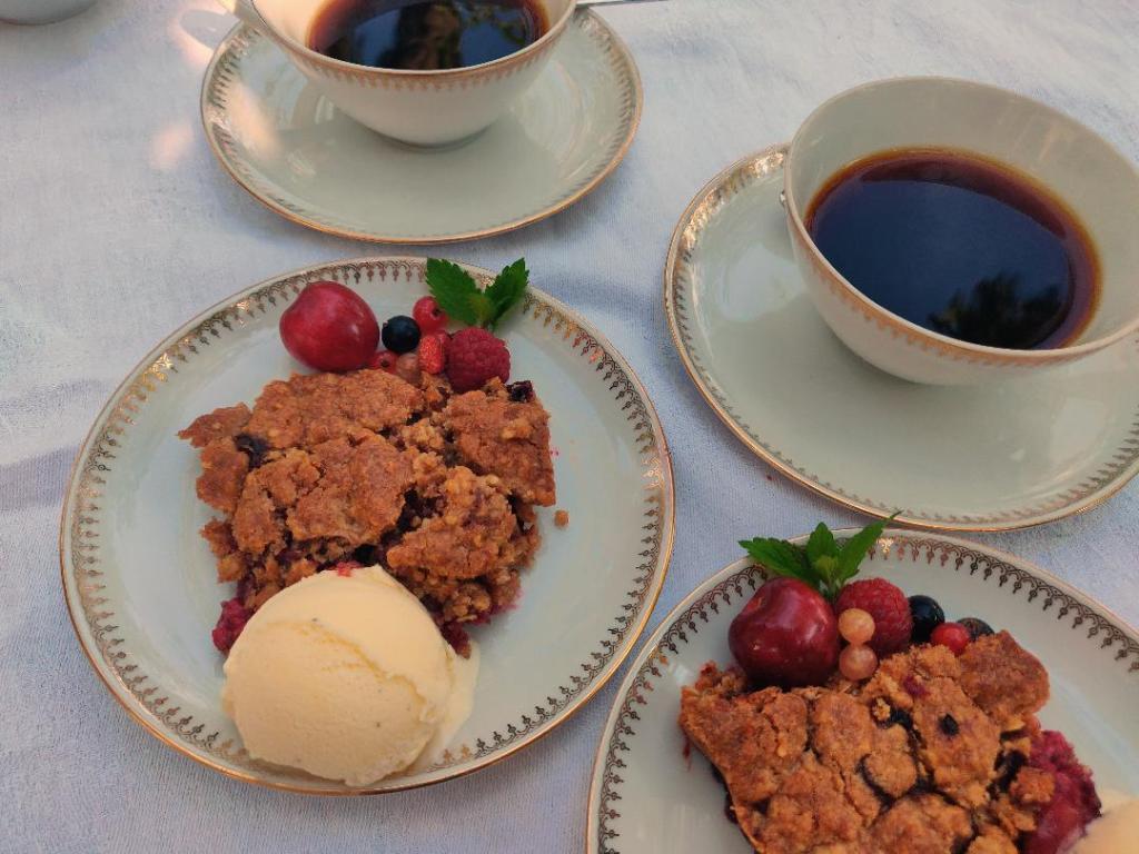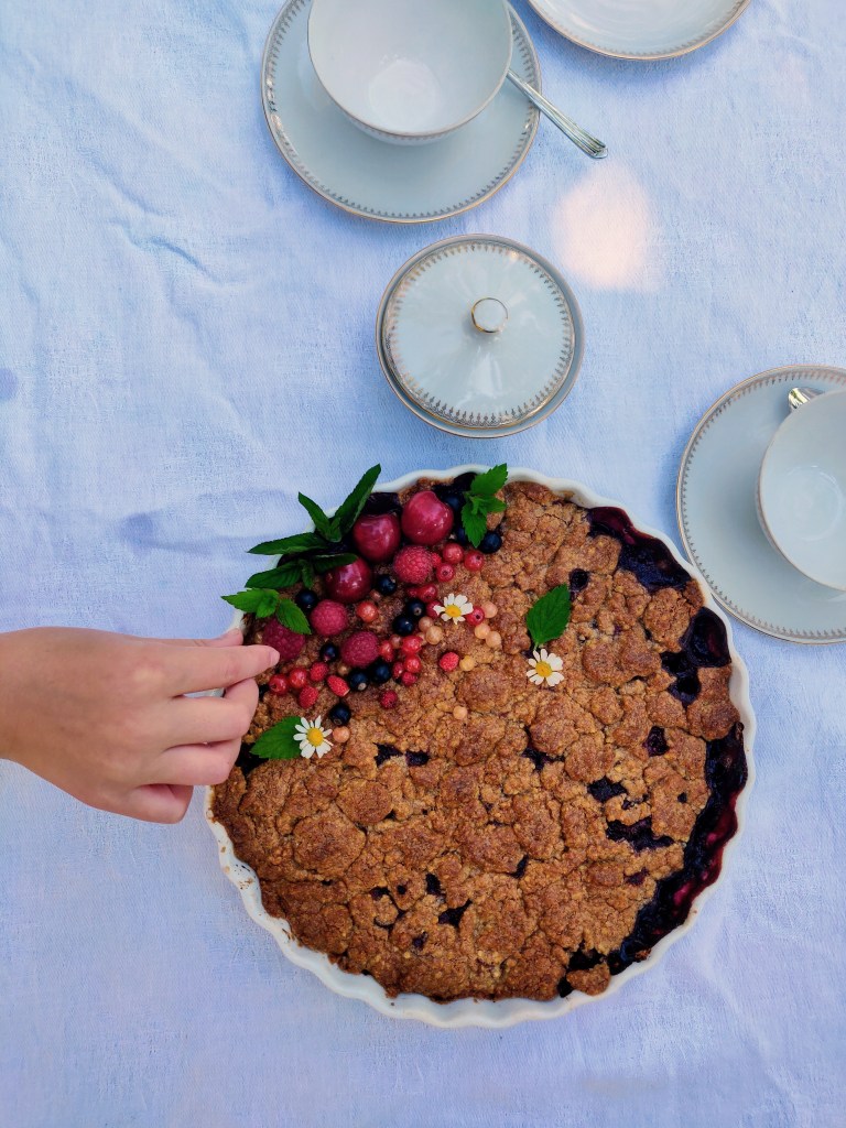 If you spontaneously feel like having cake with coffee and you have fresh fruit and berries available, a crumble is ideal! It is made quickly made and Loved by children as well as adults.