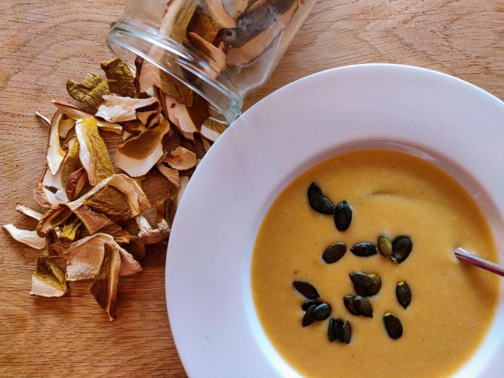 Mushrooms are very rich in spermidine and even when dried they still contain a lot of spermidine. This year we found beautiful porcini mushrooms and dried them. These are great for risotto or soups! Potatoes are moderately high in spermidine, but the fact that we eat large amounts of it makes them a source not to be underestimated. For the eye and a special taste, we like to top the soup with salted, roasted pumpkin seeds, which like all seeds contain a lot of spermidine.